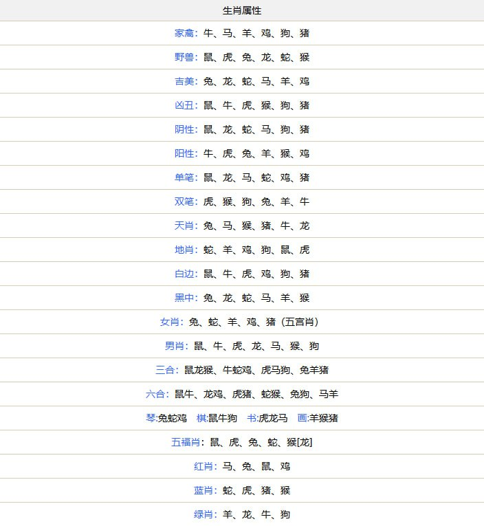 | 家禽:牛马羊鸡狗猪 野兽:鼠虎兔龙蛇猴 |